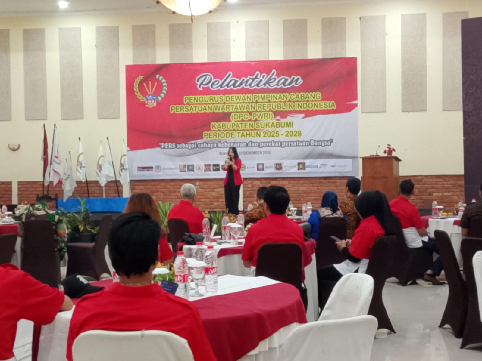 KAB. SUKABUMI, MPIDi tengah derasnya arus informasi, hoaks, dan kepentingan yang kerap membelokkan kebenaran, Persatuan Wartawan Republik Indonesia (PWRI) kembali meneguhkan jati dirinya sebagai penjaga nurani publik. Momentum tersebut ditandai dengan pelantikan Pengurus Dewan Pimpinan Cabang (DPC) PWRI Kabupaten Sukabumi periode 2025–2028, yang berlangsung khidmat di Hotel Augusta, Cikukulu, Kabupaten Sukabumi, Pada Senin, (22/12/2025).